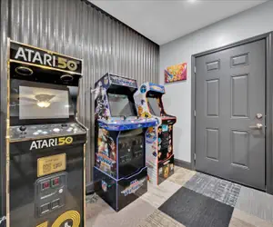 Rainy day? No problem! The home features a games room with video games, a big-screen TV, and more, ensuring fun for kids and adults alike.