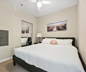 You will have access to a spacious, open concept one-bedroom condo and private bathroom during your stay. Whether you are in town for a quick trip or extended stay, this condo has everything you need. In the main living space you will find a comfortable couch and tall windows, making it the perfect spot to relax and stream your favorite shows. The fully operational kitchen features a dishwasher, full-sized refrigerator, and moveable island. Off the main space is a sleek, cozy bedroom and modern bathroom featuring a large shower with a removable handheld shower head. Start your morning off right with a hot cup of coffee from the Keurig and a workout in the 24/7 fitness center. Spend your day at the pool or hot tub. Need a safe spot for your vehicle? No worries, we have you covered! One free parking space is provided in the attached parking garage.