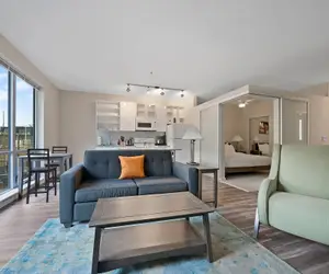 You will have access to a spacious, open concept one-bedroom condo and private bathroom during your stay. Whether you are in town for a quick trip or extended stay, this condo has everything you need. In the main living space you will find a comfortable couch and tall windows, making it the perfect spot to relax and stream your favorite shows. The fully operational kitchen features a dishwasher, full-sized refrigerator, and moveable island. Off the main space is a sleek, cozy bedroom and modern bathroom featuring a large shower with a removable handheld shower head. Start your morning off right with a hot cup of coffee from the Keurig and a workout in the 24/7 fitness center. Spend your day at the pool or hot tub. Need a safe spot for your vehicle? No worries, we have you covered! One free parking space is provided in the attached parking garage.