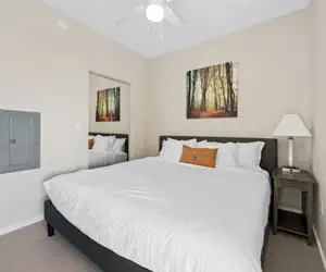 You will have access to a spacious, open concept one-bedroom condo and private bathroom during your stay. Whether you are in town for a quick trip or extended stay, this condo has everything you need. In the main living space you will find a comfortable couch and tall windows, making it the perfect spot to relax and stream your favorite shows. The fully operational kitchen features a dishwasher, full-sized refrigerator, and moveable island. Off the main space is a sleek, cozy bedroom and modern bathroom featuring a large shower with a removable handheld shower head. Start your morning off right with a hot cup of coffee from the Keurig and a workout in the 24/7 fitness center. Spend your day at the pool or hot tub. Need a safe spot for your vehicle? No worries, we have you covered! One free parking space is provided in the attached parking garage.