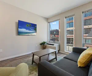 You will have access to a spacious, open concept one-bedroom condo and private bathroom during your stay. Whether you are in town for a quick trip or extended stay, this condo has everything you need. In the main living space you will find a comfortable couch and tall windows, making it the perfect spot to relax and stream your favorite shows. The fully operational kitchen features a dishwasher, full-sized refrigerator, and moveable island. Off the main space is a sleek, cozy bedroom and modern bathroom featuring a large shower with a removable handheld shower head. Start your morning off right with a hot cup of coffee from the Keurig and a workout in the 24/7 fitness center. Spend your day at the pool or hot tub. Need a safe spot for your vehicle? No worries, we have you covered! One free parking space is provided in the attached parking garage.