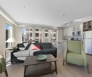 You will have access to a spacious, open concept one-bedroom condo and private bathroom during your stay. Whether you are in town for a quick trip or extended stay, this condo has everything you need. In the main living space you will find a comfortable couch and tall windows, making it the perfect spot to relax and stream your favorite shows. The fully operational kitchen features a dishwasher, full-sized refrigerator, and moveable island. Off the main space is a sleek, cozy bedroom and modern bathroom featuring a large shower with a removable handheld shower head. Start your morning off right with a hot cup of coffee from the Keurig and a workout in the 24/7 fitness center. Spend your day at the pool or hot tub. Need a safe spot for your vehicle? No worries, we have you covered! One free parking space is provided in the attached parking garage.