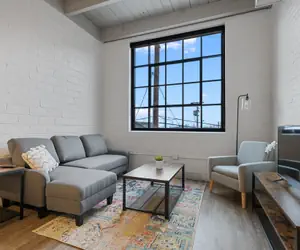 The exposed brick, industrial style windows, and open concept layout make for the perfect spot to capture your time at Superior in Insta-worthy shots. Off of the main living space, privacy and luxury collide in the spacious bathroom featuring earthy materials and a vibrant shower. Kick back on the couch and stream your favorite shows after a long day.