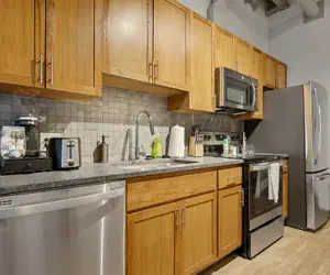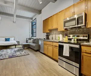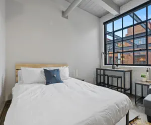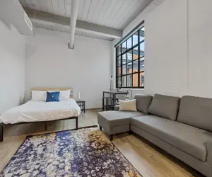 You will have access to one loft style studio and private bathroom space during your stay. Whip up a 5-star meal or test your barista skills in the kitchen featuring a dishwasher, oven/stove, Keurig machine, and full-sized fridge. The exposed brick, industrial sized windows, and open concept layout make for the perfect spot to capture your time at Superior in Insta-worthy shots. Off of the main living space, privacy and luxury collide in the spacious bathroom featuring earthy materials and a vibrant shower. Kick back on the couch and stream your favorite shows after a long day.