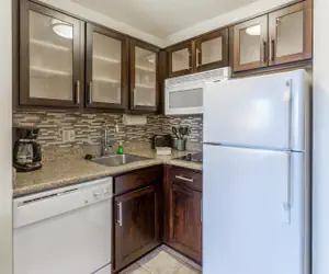In the KITCHEN you'll find a stove, a microwave, a dishwasher, a refrigerator, cooking utensils, and dishes. Start your day with a cup of coffee, fresh from our in-suite coffee machine. In the morning, enjoy a complimentary breakfast buffet which features a variety of delicious options.