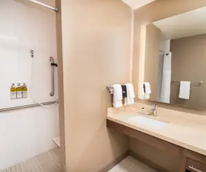 Get ready in our 1 BATHROOM. There is a roll-in shower. We provide you with a hairdryer, towels, and complimentary toiletries. There are self-serve washing and drying machines available on-site. Dry cleaning services are available on-site.
