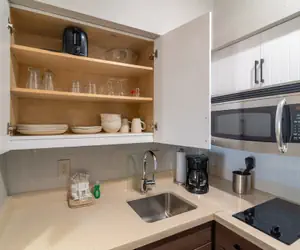 • Kitchen: Stove, Microwave Oven, Toaster, Refrigerator (Full), Icemaker In Refrigerator, Dishwasher, Pots/Pans/Serving Dishes, Plates/Glassware, Silverware