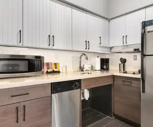 In the KITCHEN you'll find a stove, a microwave, a dishwasher, a refrigerator, cooking utensils, and dishes. Start your day with a cup of coffee, fresh from our in-suite coffee machine. In the morning, enjoy a complimentary breakfast buffet which features a variety of delicious options. You can grill up a meal in the shared BBQ area.