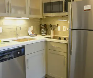 In the KITCHEN you'll find a stove, a microwave, a dishwasher, a refrigerator, cooking utensils, and dishes. Start your day with a cup of coffee, fresh from our in-suite coffee machine. In the morning, enjoy a complimentary breakfast buffet which features a variety of delicious options. You can grill up a meal in the shared BBQ area.
