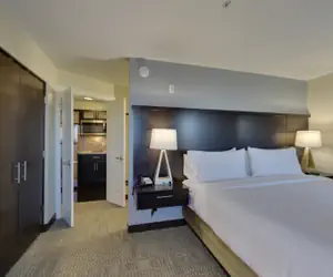 In our hearing accessible suite you'll find 1 BEDROOM with a King bed. There is a Sleeper sofa in the living area. Get ready in our 1 BATHROOM. There is a roll-in shower. We provide you with a hairdryer, towels, and complimentary toiletries. There are self-serve washing and drying machines available on-site. Dry cleaning services are available on-site.