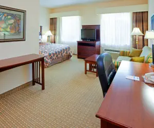 This studio condo in Durham, North Carolina is an excellent choice for couples or solo travelers. The air-conditioned living area features flat screen televisions with a variety of programming options. The spacious room is designed for short and long term guests and offers a full kitchen.