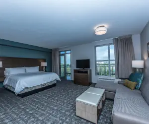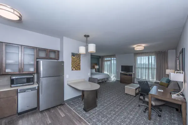 Guests can enjoy a variety of amenities, including an outdoor pool (open in summer from May to November), a complimentary breakfast buffet, and complimentary evening socials on Monday-Wednesday from 5:30pm-7:00pm, which include light bites, beer, wine, and soft drinks depending on availability. Other amenities include Wi-Fi, parking, a fitness center (6AM - 11PM), a 24-hour business center, an on-site guest service team, an on-site washer and dryer (self-serve), an on-site dry-cleaning service, and a light housekeeping service.