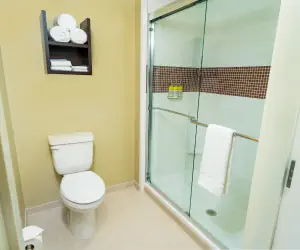 In our hearing accessible suite you'll find 1 BEDROOM with 2 Double beds. There is a Sleeper sofa in the living area.