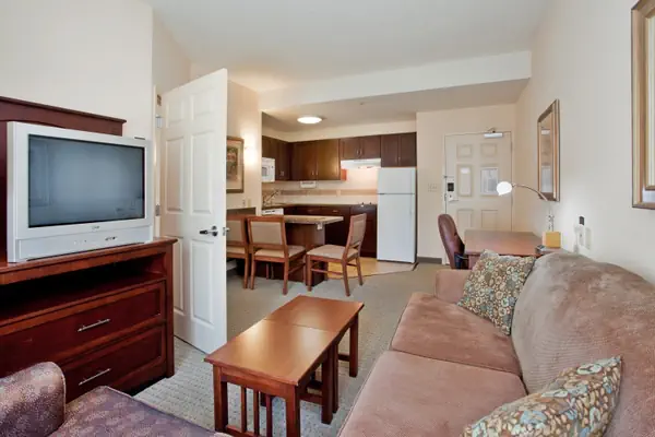 In our suite you'll find 1 BEDROOM with 2 Queen beds. There is a Sleeper sofa in the living area. Get ready in our 1 BATHROOM. We provide you with a hairdryer, towels, and complimentary toiletries. There are self-serve washing and drying machines available on-site. Dry cleaning services are available on-site.