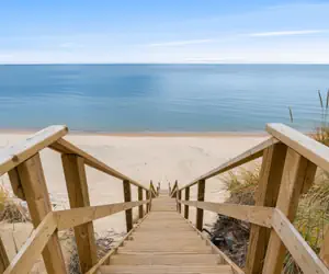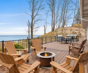 Just a few steps from our neighborhood beach! Surround yourself with nature and enjoy stunning views from our luxurious 3-bedroom house that sits right on Lake Michigan. Set in a prime location, the house is tucked away in a private community close to restaurants and shopping. Gather around the beautiful fire pit and watch breathtaking sunsets from the furnished wooden patio. Great trails, beaches, and exploring around!