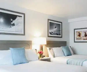 Explore the double queen room with a balcony, suitable for up to 4 guests, in the heart of prime Jackson Hole. Just a 20-minute drive from the airport and nestled at the base of Snow King Mountain, you can enjoy privacy and unwind on your personal balcony after an amazing day.