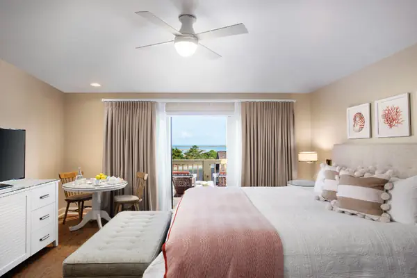 Experience the ultimate family vacation at Outer Banks (OBX) in a cozy king guestroom, featuring luxury bedding and a private balcony overlooking Currituck Sound - perfect for 2 guests. Our decor exudes understated elegance, with the finest linens and panoramic views. Whether relaxing by the pool, admiring the ocean and dunes, or enjoying the sunset over Currituck Sound, you're just steps from the beach, dining options, and a variety of resort amenities and activities.