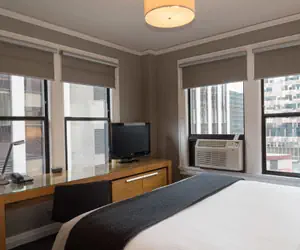 • Living Space: a king bed, pillow top mattress, desk, USB bedside, Tivoli Bluetooth clock radio, 50" HD cable TV, mini-fridge, robes, safe