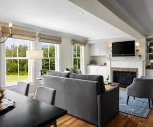 • Living Area: decorative electric fireplace, sleeper sofa
