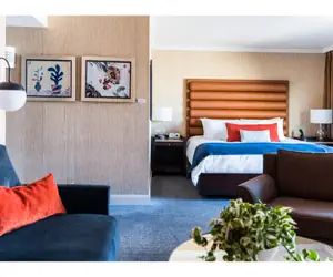 Welcome movers and shakers who like to live large! The loft suite offers stylish decor and thoughtfully chosen amenities, making it perfect for those seeking comfort and elegance during their visit to Portland. Experience luxury where every detail—from the high-quality materials to the local artwork—enhances your stay. Features a productive workspace and a private soaking tub, ideal for unwinding after exploring the city or attending meetings. It accommodates up to 4 guests!
