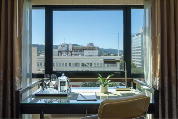Enjoy the luxury of Portland's city views from our premium room for 4, ideal for catching one of Rose City’s legendary sunsets. Generously sized and features large windows that showcase the urban landscape, along with a choice of comfortable bedding options, perfect for up to 4 guests. The decor combines natural tones and luxurious textures, highlighted by original local artwork. A range of thoughtful comforts enhances your experience during your stay.