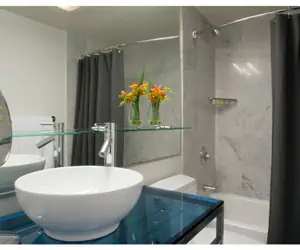 • Bathroom: equipped, bathtub/shower combination, plush robes and KLUR bath amenities