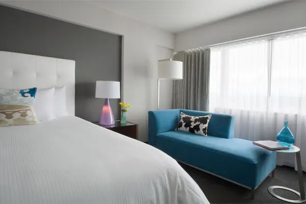 Discover our exclusive Patron King suite, crafted for executives or families craving comfort and space. Located in downtown Tacoma, it showcases tasteful furnishings and a luxuriously comfortable mattress for ultimate relaxation. Whether your purpose is art or business, our suite for up to four guests grants convenient access to the Convention Center, museums, and dining options, all just steps away. Ideal for four guests, it's perfect for unwinding and finding inspiration.