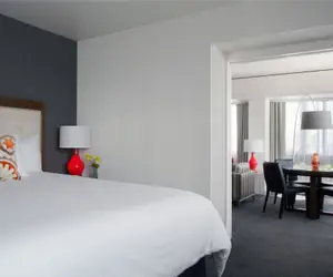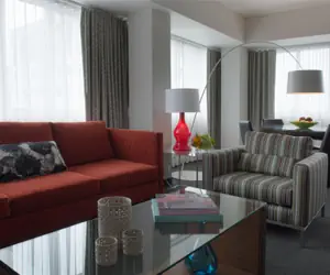 Experience our top-floor Patron King Suite, ideal for executives or families seeking comfort and space. Nestled in downtown Tacoma, it offers tasteful furnishings and a luxuriously comfortable mattress for a relaxing stay. Whether you're here for art or business, our suite for up to four guests offers convenient access to the Convention Center, museums, and dining spots, all just steps away. Perfect for 4 guests, it's great for relaxing and inspiring.