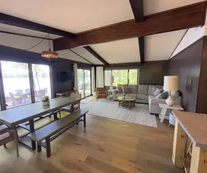 • Outdoor Area: large deck with outdoor dining, BBQ grill, fire pit, outdoor seating, boat dock, 2 kayaks, 1 paddle boat, 1 swim raft