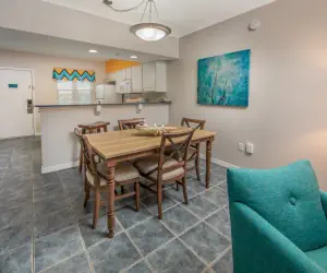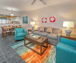 Our condo-style villa in Panama City ensures you can go from sofa to sand in minutes! Each of our villas offers a beach view. There is also a sparkling outdoor pool and shared hot tub on-site. Pier Park is the most popular attraction in the area, and it’s just 2 miles away and has plenty of shopping, dining, and entertainment. In the evening, gather around the communal fire pit and enjoy smores!