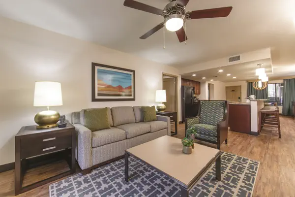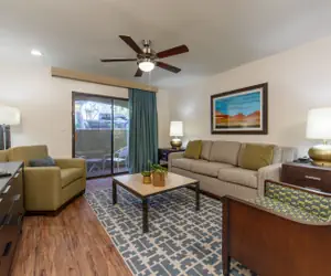 A 2-bedroom villa in Scottsdale! A relaxing, southwest experience near the scenic Sonoran Desert! Families will love the water slides, pools, and family activity center, proximity to great golf, upscale shopping, and Old Town Scottsdale’s nightlife. Head just west of the resort and you’ll find the popular McDowell Sonoran Preserve. This free outdoor reserve features more than 182 miles of outdoor trails. The Phoenix Zoo in downtown Phoenix is also popular, and the beautiful 222-acre Ecanto Park that includes the Enchanted Island Amusement Park is perfect for family fun. There are a bunch of great golf courses in the area - be sure to check out Grayhawk Golf Club and TPC Scottsdale. If you're craving something sweet, head over to The White Chocolate Grill, which serves refined riffs on American staples and shareable signature desserts.