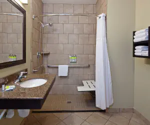 Get ready in our 1 BATHROOM with a roll-in shower. If you spill anything on your clothes during your stay, you can wash them using the on-site laundry.