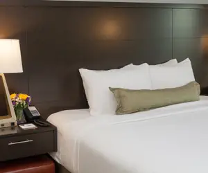 Our STUDIO has a Queen bed and a Sleeper sofa. Retreat to our air-conditioned space, curl up and enjoy your favorite shows on our flatscreen TV or watch your favorite movie with our DVD player. In-room movies are available on premium cable. You can easily connect with friends and family back home, courtesy of the complimentary Wi-Fi. If you’re traveling for business, get some work done while you're away by taking advantage of the laptop-friendly space.