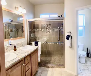 🚿 Master bath with ensuite walk-in tiled shower and second hallway bath with tub/shower for other two bedrooms