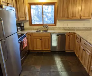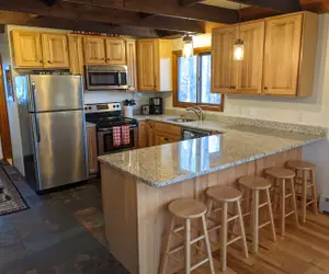 On the main floor, there is a full bathroom, a large master bedroom with a king bed, and a "Great Room" consisting of the kitchen, dining, and living rooms. The fully-appointed kitchen has granite countertops with stainless steel appliances, including a dishwasher and disposal. Essential cooking and kitchen accessories are provided. The lower level of the home features two additional bedrooms, a full bathroom with washer and dryer, a family room, and a mudroom for ski and boarding equipment storage. The home also offers a third living level, open to the family room below - the "loft."