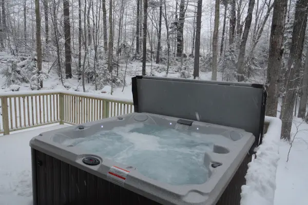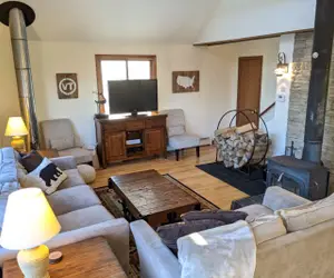 The "Clocktower Chalet" on Okemo Mountain is the consummate Vermont ski chalet, located a short walk from the base lodge of Okemo Mountain in Ludlow, Vermont. With beds to sleep 12, this home is on a private wooded lot with views of the Okemo ski resort. It is a spacious 2,000 square foot home with 4 bedrooms, 2 full bathrooms, and two large family rooms. The home features an open-concept living room, dining room, and kitchen, a wood stove, wireless internet, an outdoor fire pit, and a large hot tub on a beautiful private rear deck.