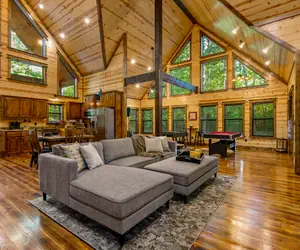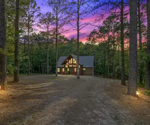 Agape Creek is a highly loved and top-reviewed cabin, known for its rare combination of privacy, charm, and luxury touches. Situated on a 1.3-acre wooded lot at the end of a quiet cul-de-sac, the cabin sits right on a natural-fed stream, offering peaceful nature sounds and frequent deer sightings. Despite the secluded feel, you’re just minutes from Hochatown’s best restaurants, shops, attractions, Broken Bow Lake, and Beavers Bend State Park.
