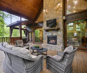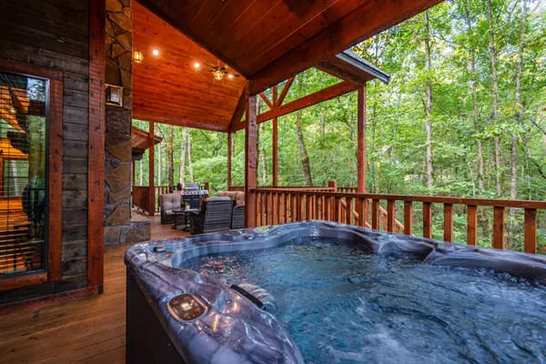 • ⭐ Oversized deck with 4-person hot tub, outdoor fireplace & Smart TV