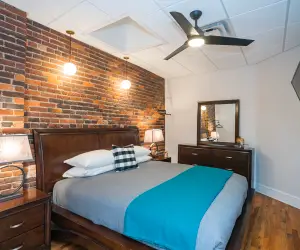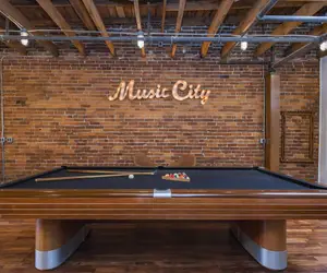 This contemporary loft is the perfect setting for your next Nashville Celebration. Enter off 3rd Ave North just 2 blocks from all the Attractions that Nashville is known for. Located in the heart of downtown, this converted law office is now Nashville's premier Music City destination. Accessing the Library Penthouse is a breeze with Private elevator access to the 3rd level. The Lounge area of the penthouse is well appointed with all the luxuries for your Best Nashville Experience. "The Cloud" oversized down stuffed sectional sofa from RH and 75" HDTV with full 5.1 Sonos Surround Sound will make a perfect relaxation area after a full day on Broadway. Over-sized pool table, well appointed gourmet kitchen, and dining table with seating for 12 round out the living space of this amazing retreat. 3 King Master Suites, 1 Queen Suite and 6 twin built-in-bunks & 2 Twin Rollaways (with memory foam mattress) provide 12 separate bedding options, all appointed with luxe bedding including down and down alternative pillow options. Our Beauty Bar and 3 full bathrooms with Spa Quality bath amenities will certainly prepare your group for a night on the town.
