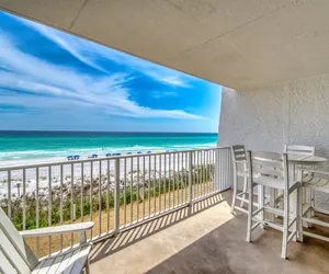 Enter condo A203 at Beach House Condominiums to an open, airy beachy welcome! This property is located directly on the beach with no streets to cross. It is a beautiful two-bedroom, two-bathroom condo that sits on the 2nd floor and is located on the east end of the property near the tennis courts. Stepping outside onto the covered balcony, you are met with a gorgeous view of the Gulf of Mexico and the white sandy beaches of the Emerald Coast! You can hear the waves crashing and almost feel the surf splash right from the balcony!
