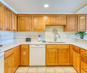 The kitchen is fully equipped with all major and small appliances including refrigerator, stove, dishwasher and microwave & more. Cookware, utensils, and table service are all included, with a private washer and dryer located conveniently inside the condo.