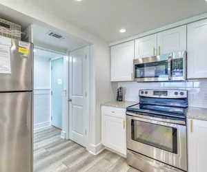 The kitchen is fully equipped with all major and small appliances including refrigerator, stove, dishwasher and microwave & more. Cookware, utensils, and table service are all included, with a private washer and dryer located conveniently inside the condo.