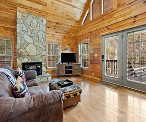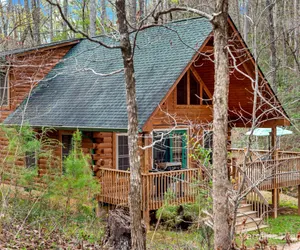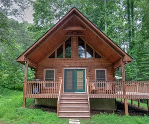 Gillford Cabin is a lovely and private two-bedroom, two-bath Log Home situated along a small stream inside the gates of Riverbend at Lake Lure.