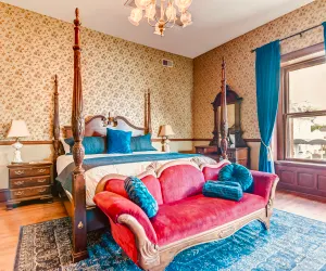 Experience historic Springfield in style at The Bressmer’s 2nd-floor suite, a 3-bedroom, 2-bath retreat within a grand Victorian mansion. This beautifully restored space blends original 19th-century charm with modern conveniences, offering a one-of-a-kind getaway near the State Capitol and Lincoln historic sites.