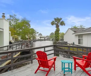 Enjoy the extra spacious living area from the moment you walk in the door with natural light throughout. The full kitchen includes all stainless steel appliances and come fully stocked with all the kitchen items you need during your stay. This home is one of few with such a large fenced in back yard! You can also enjoy fishing from the deck, as the home is also right on the water. Outside you will find a large dining area with a view of the water as well as the spacious back yard.