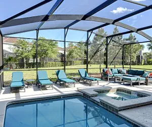 Relax outdoors in the screened lanai with a private pool and spa, dining and lounging area, and even a TV so you can watch your favorite shows in the sun! Enjoy access to Solterra Resort’s amenities including a lazy river, waterslide, zero-entry pool, clubhouse gym, café, and pickleball courts.