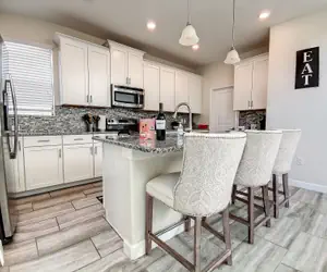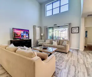 Our beautifully furnished 5BR/5BA home features two king master suites, a Mickey-themed kids’ room, and a spacious upstairs family suite with a queen and two twins. The loft includes a game area with air hockey, foosball, Xbox, PS4, and board games. Downstairs, the garage has been transformed into a cozy, air-conditioned theater room with a 100” screen and recliners.