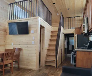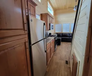 Everyone can relax and enjoy this brand new 399 sq. ft. tiny home built in 2021 which sleeps 8 for true hospitality. In addition to a large loft, the home has 2 cozy bedrooms, 1 pull-out sofa bed, 1 spacious bathroom with a luxurious shower, a large kitchen, and a living room.