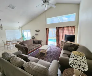 As you enter this lovely home, you'll find the spacious hallway and living room. The living room is a great place to relax in comfort after a busy day at the many attractions.