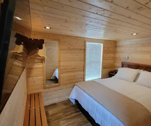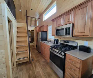 Everyone can relax and enjoy this brand new 399 sq. ft. tiny home built in 2023 which sleeps 8 for true hospitality. In addition to a large loft, the home has 2 cozy bedrooms, 1 pull-out sofa bed, 1 spacious bathroom with a luxurious shower, a large kitchen, and a living room.